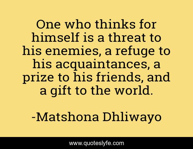 "Matshona Dhliwayo Quotes." Quoteslyfe.com, 2025. Fri. 05 Dec. 2025. <https://www.quoteslyfe.com/quote/One-who-thinks-for-himself-is-a-58105>.