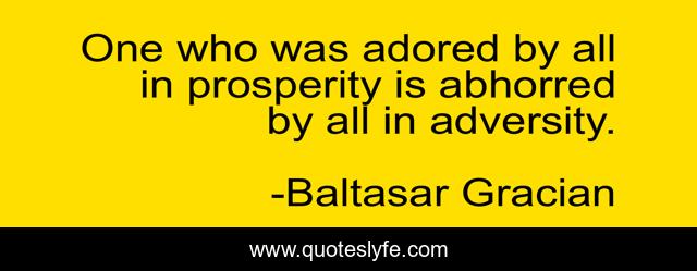 This page presents the quote "One who was adored by all in prosperity is abhorred by all in adversity.". Author of this quote is Baltasar Gracian. .