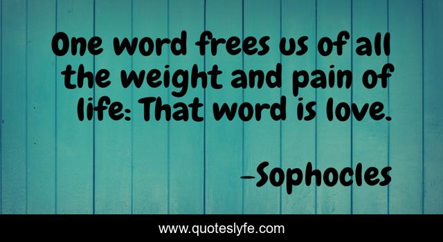 This page presents the quote "One word frees us of all the weight and pain of life: That word is love.". Author of this quote is Sophocles. .