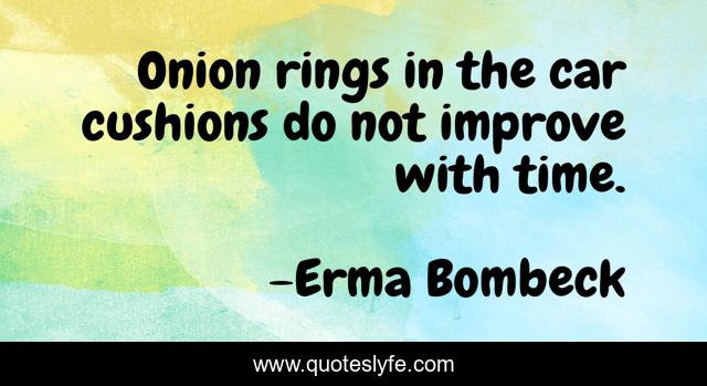 This page presents the quote "Onion rings in the car cushions do not improve with time.". Author of this quote is Erma Bombeck. This quote is about time, onion, improve,.
