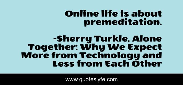 "Sherry Turkle, Alone Together: Why We Expect More from Technology and Less from Each Other Quotes." Quoteslyfe.com, 2025. Sat. 06 Dec. 2025. <https://www.quoteslyfe.com/quote/Online-life-is-about-premeditation-236921>.