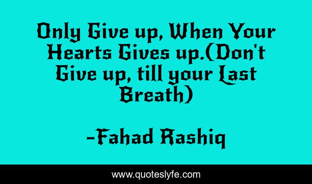 This page presents the quote "Only Give up, When Your Hearts Gives up.(Don't Give up, till your Last Breath)". Author of this quote is Fahad Rashiq. This quote is about giveup, authored, love, givesup, beauty, pathan, fahad-rashiq, only, last-breath,.