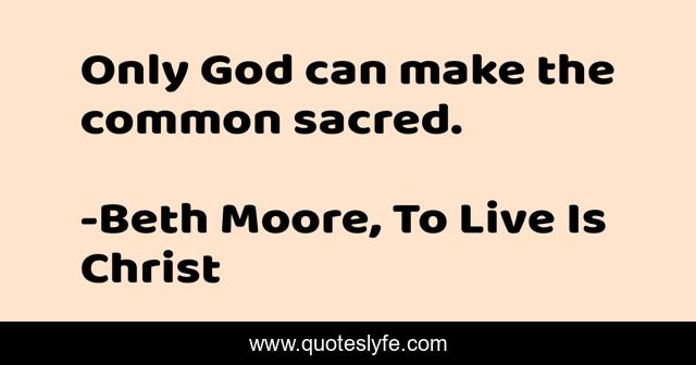 "Beth Moore, To Live Is Christ Quotes." Quoteslyfe.com, 2025. Fri. 05 Dec. 2025. <https://www.quoteslyfe.com/quote/Only-God-can-make-the-common-sacred-142083>.