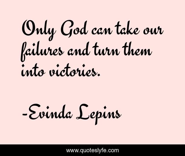 This page presents the quote "Only God can take our failures and turn them into victories.". Author of this quote is Evinda Lepins. This quote is about failures, life, victories, god,.