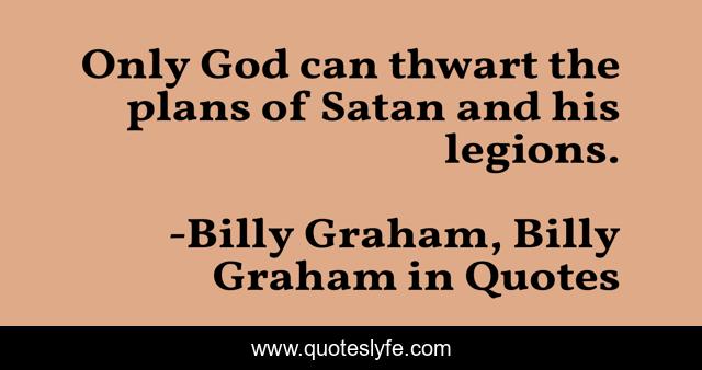 This page presents the quote "Only God can thwart the plans of Satan and his legions.". Author of this quote is Billy Graham, Billy Graham in Quotes. This quote is about devil, satan, billy-graham,.