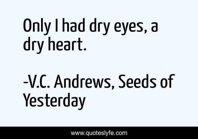 This page presents the quote "Only I had dry eyes, a dry heart.". Author of this quote is V.C. Andrews, Seeds of Yesterday. This quote is about heartache, loss, love, hearbreak, incest, affection,.