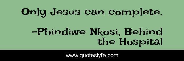 "Phindiwe Nkosi, Behind the Hospital Quotes." Quoteslyfe.com, 2025. Fri. 05 Dec. 2025. <https://www.quoteslyfe.com/quote/Only-Jesus-can-complete-134667>.