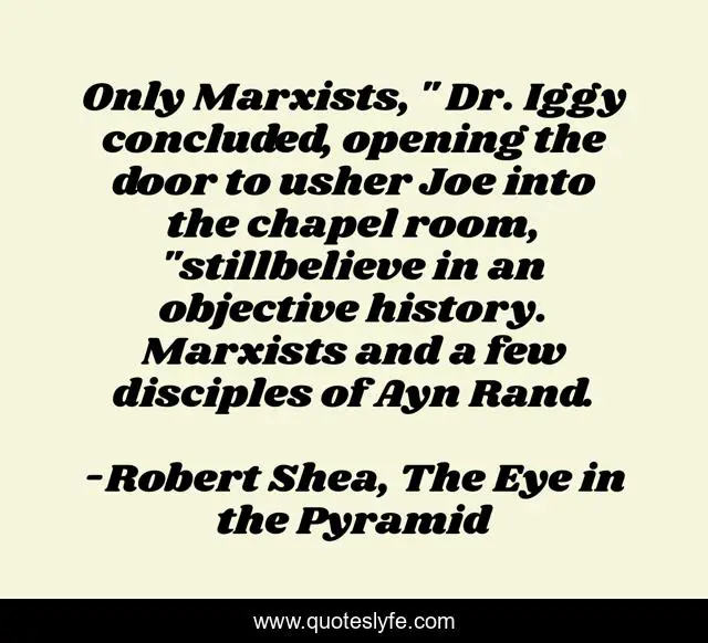 "Robert Shea, The Eye in the Pyramid Quotes." Quoteslyfe.com, 2025. Mon. 08 Dec. 2025. <https://www.quoteslyfe.com/quote/Only-Marxists-Dr-Iggy-concluded-opening-the-70760>.