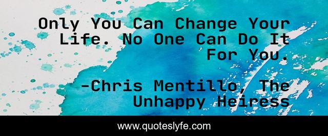 "Chris Mentillo, The Unhappy Heiress Quotes." Quoteslyfe.com, 2025. Sat. 06 Dec. 2025. <https://www.quoteslyfe.com/quote/Only-You-Can-Change-Your-Life-No-211737>.