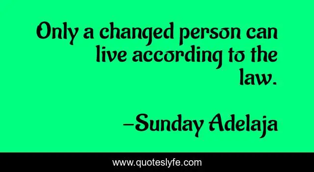 This page presents the quote "Only a changed person can live according to the law.". Author of this quote is Sunday Adelaja. This quote is about person, law, change,.