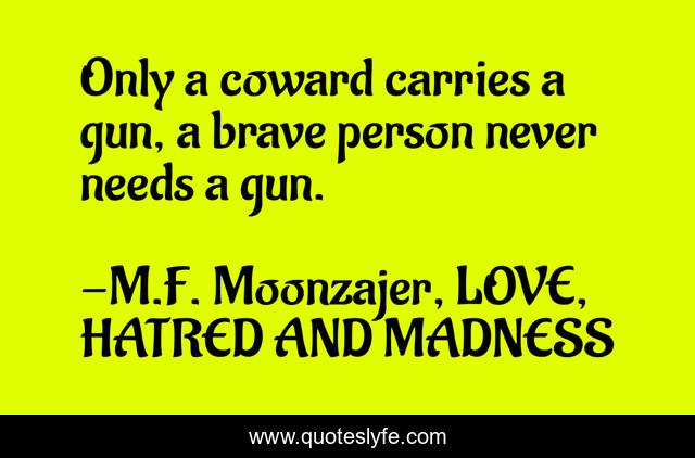 "M.F. Moonzajer, LOVE, HATRED AND MADNESS Quotes." Quoteslyfe.com, 2025. Mon. 08 Dec. 2025. <https://www.quoteslyfe.com/quote/Only-a-coward-carries-a-gun-a-73646>.