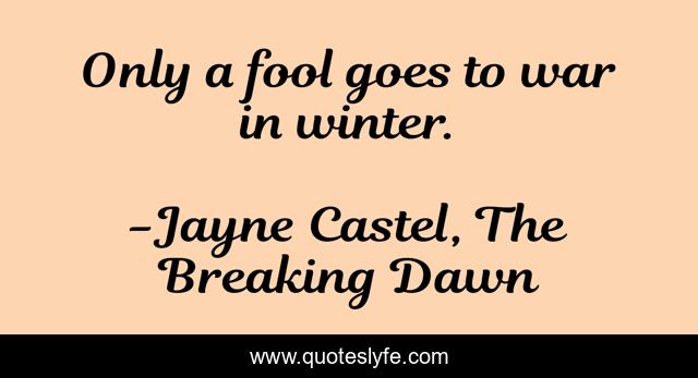 This page presents the quote "Only a fool goes to war in winter.". Author of this quote is Jayne Castel, The Breaking Dawn. This quote is about battle, warriors, war,.