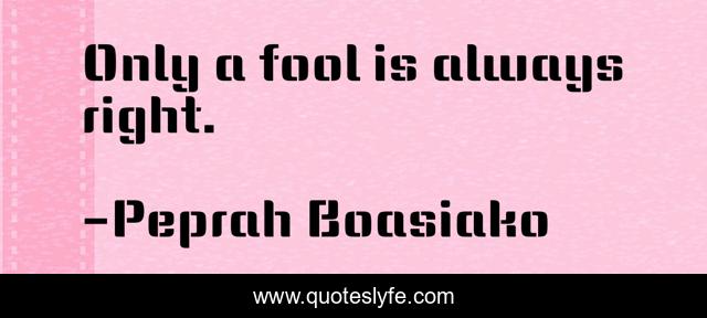 This page presents the quote "Only a fool is always right.". Author of this quote is Peprah Boasiako. This quote is about life, life-and-living, life-lessons,.