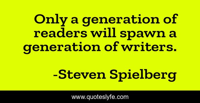 This page presents the quote "Only a generation of readers will spawn a generation of writers.". Author of this quote is Steven Spielberg. This quote is about education, reading,.
