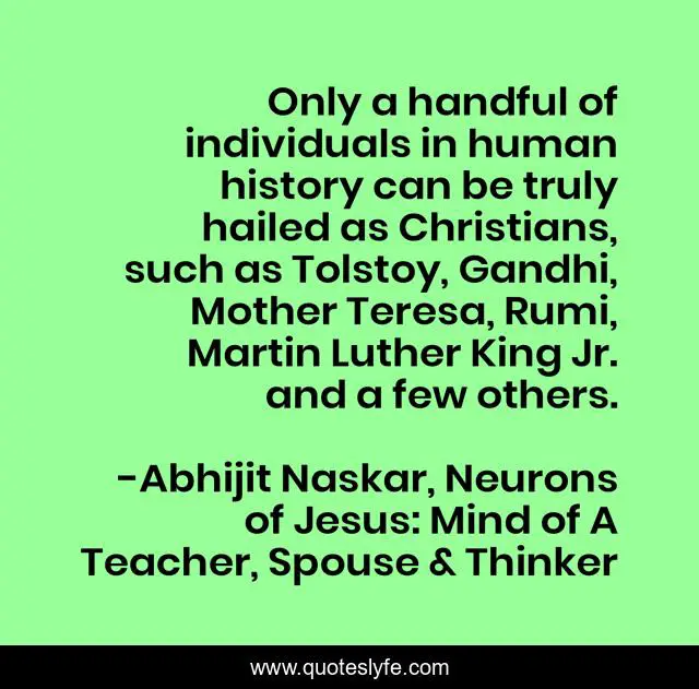 Only a handful of individuals in human history can be truly hailed as Christians, such as Tolstoy, Gandhi, Mother Teresa, Rumi, Martin Luther King Jr. and a few others.