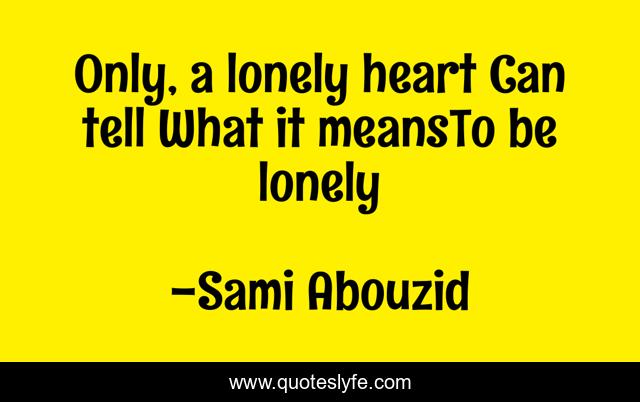 This page presents the quote "Only, a lonely heart Can tell What it meansTo be lonely". Author of this quote is Sami Abouzid. This quote is about love, affection,.