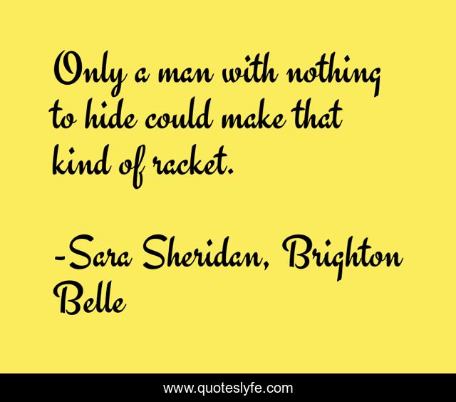 This page presents the quote "Only a man with nothing to hide could make that kind of racket.". Author of this quote is Sara Sheridan, Brighton Belle. This quote is about noise, hide, humour, racket, loud, man,.