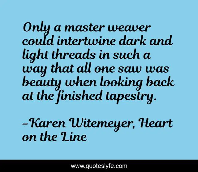 "Karen Witemeyer, Heart on the Line Quotes." Quoteslyfe.com, 2025. Mon. 08 Dec. 2025. <https://www.quoteslyfe.com/quote/Only-a-master-weaver-could-intertwine-dark-203031>.