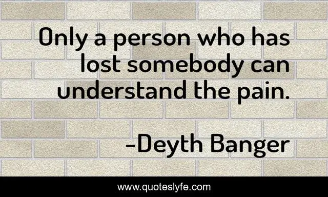 This page presents the quote "Only a person who has lost somebody can understand the pain.". Author of this quote is Deyth Banger. This quote is about person, only, pain, lost, lose,.