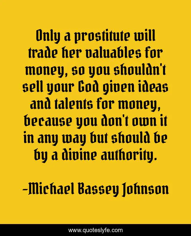 "Michael Bassey Johnson Quotes." Quoteslyfe.com, 2025. Tue. 09 Dec. 2025. <https://www.quoteslyfe.com/quote/Only-a-prostitute-will-trade-her-valuables-177401>.