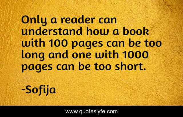 This page presents the quote "Only a reader can understand how a book with 100 pages can be too long and one with 1000 pages can be too short.". Author of this quote is Sofija. This quote is about reading-books, books, reader,.