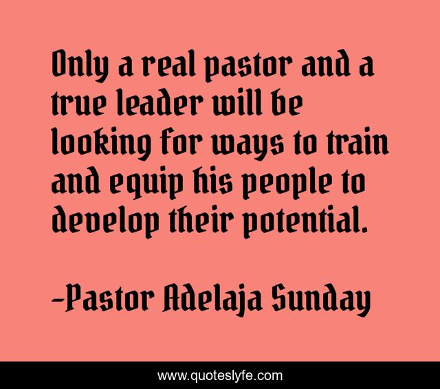 This page presents the quote "Only a real pastor and a true leader will be looking for ways to train and equip his people to develop their potential.". Author of this quote is Pastor Adelaja Sunday. This quote is about building, shepherd, hireling, influence, pastor, potential,.