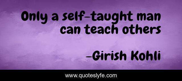 This page presents the quote "Only a self-taught man can teach others". Author of this quote is Girish Kohli. This quote is about teaching, education, learning,.
