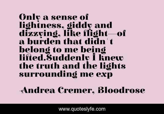 "Andrea Cremer, Bloodrose Quotes." Quoteslyfe.com, 2025. Fri. 05 Dec. 2025. <https://www.quoteslyfe.com/quote/Only-a-sense-of-lightness-giddy-and-54490>.