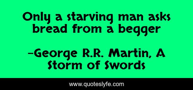 "George R.R. Martin, A Storm of Swords Quotes." Quoteslyfe.com, 2025. Fri. 05 Dec. 2025. <https://www.quoteslyfe.com/quote/Only-a-starving-man-asks-bread-from-94268>.