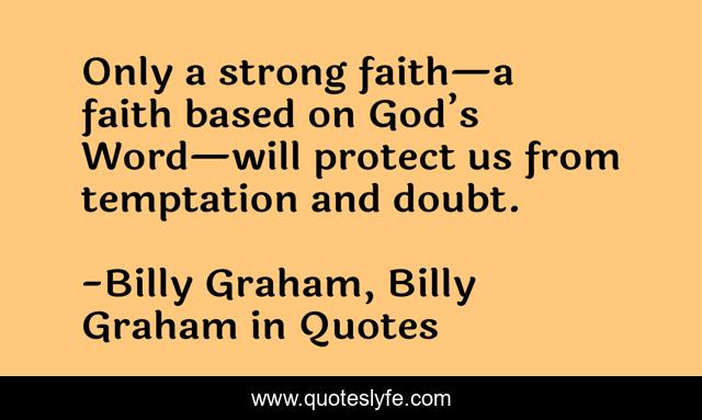 This page presents the quote "Only a strong faith—a faith based on God’s Word—will protect us from temptation and doubt.". Author of this quote is Billy Graham, Billy Graham in Quotes. This quote is about billy-graham, temptation,.