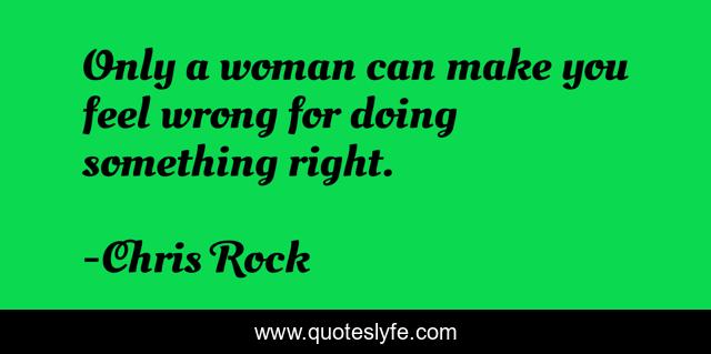 This page presents the quote "Only a woman can make you feel wrong for doing something right.". Author of this quote is Chris Rock. .