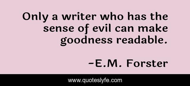 This page presents the quote "Only a writer who has the sense of evil can make goodness readable.". Author of this quote is E.M. Forster. This quote is about good, writer, evil, writing,.