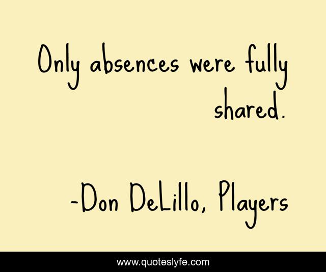 "Don DeLillo, Players Quotes." Quoteslyfe.com, 2025. Mon. 08 Dec. 2025. <https://www.quoteslyfe.com/quote/Only-absences-were-fully-shared-120566>.