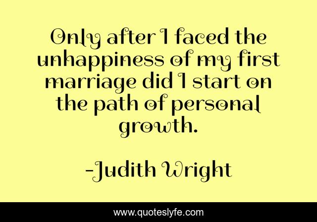 This page presents the quote "Only after I faced the unhappiness of my first marriage did I start on the path of personal growth.". Author of this quote is Judith Wright. This quote is about path, growth, start,.