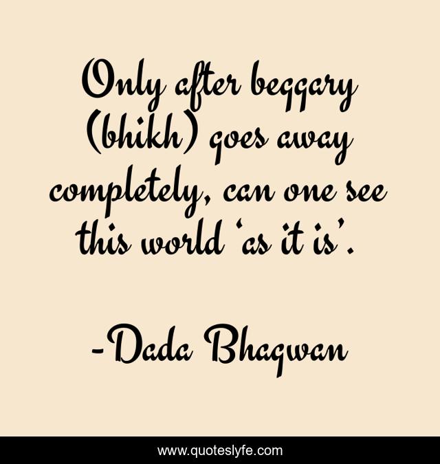 This page presents the quote "Only after beggary (bhikh) goes away completely, can one see this world ‘as it is’.". Author of this quote is Dada Bhagwan. This quote is about world, spiritual,.