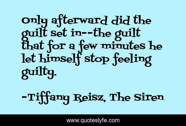 This page presents the quote "Only afterward did the guilt set in--the guilt that for a few minutes he let himself stop feeling guilty.". Author of this quote is Tiffany Reisz, The Siren. This quote is about know-that-feeling, guilt,.