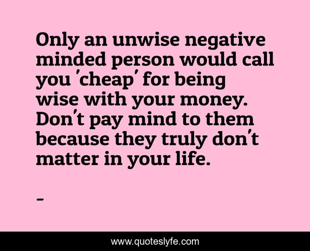 This page presents the quote "Only an unwise negative minded person would call you 'cheap' for being wise with your money. Don't pay mind to them because they truly don't matter in your life.". Author of this quote is . This quote is about being-cheap, edmond-mbiaka, being-wise-with-your-money, negative-minded-people, be-wise-with-your-money, unwise-people,.