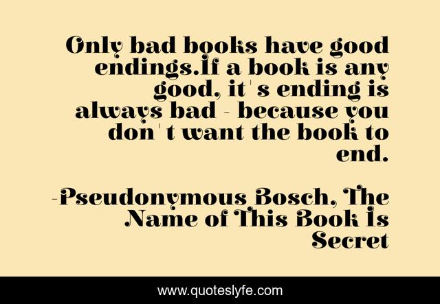 "Pseudonymous Bosch, The Name of This Book Is Secret Quotes." Quoteslyfe.com, 2025. Mon. 08 Dec. 2025. <https://www.quoteslyfe.com/quote/Only-bad-books-have-good-endings-If-42692>.