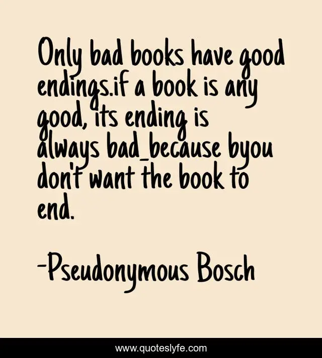 This page presents the quote "Only bad books have good endings.if a book is any good, its ending is always bad_because byou don't want the book to end.". Author of this quote is Pseudonymous Bosch. This quote is about pseudonymous, secret, bosch,.