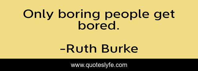 This page presents the quote "Only boring people get bored.". Author of this quote is Ruth Burke. This quote is about advice, boredom,.