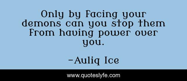 This page presents the quote "Only by facing your demons can you stop them from having power over you.". Author of this quote is Auliq Ice. This quote is about confidence, learning-from-mistakes, success, personal-growth, positive, motivational, encouragement, self-worth, self-motivational,.