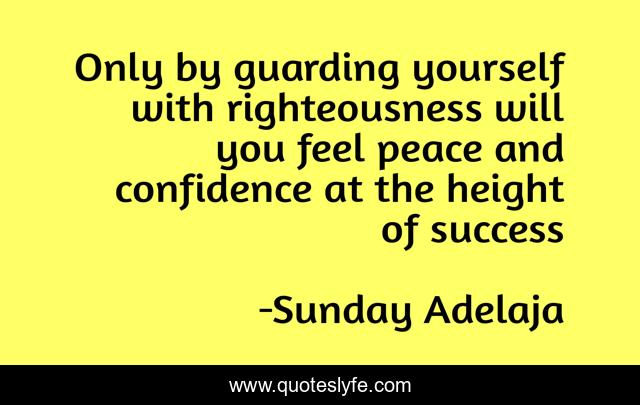 This page presents the quote "Only by guarding yourself with righteousness will you feel peace and confidence at the height of success". Author of this quote is Sunday Adelaja. This quote is about prosperity, confidence, wealth, success, feel, money, peace, riches, righteousness,.