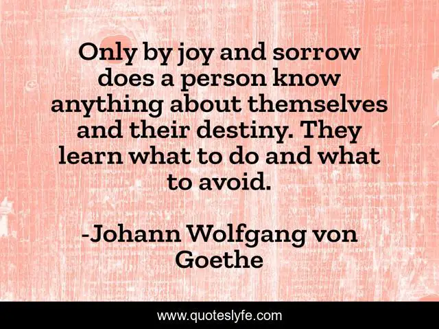 This page presents the quote "Only by joy and sorrow does a person know anything about themselves and their destiny. They learn what to do and what to avoid.". Author of this quote is Johann Wolfgang von Goethe. This quote is about joy, sorrow, destiny,.