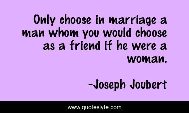 This page presents the quote "Only choose in marriage a man whom you would choose as a friend if he were a woman.". Author of this quote is Joseph Joubert. This quote is about woman, friend, man,.