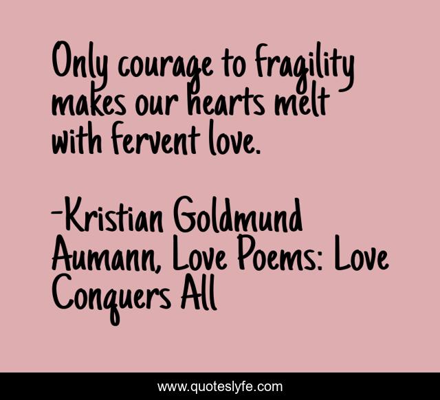 This page presents the quote "Only courage to fragility makes our hearts melt with fervent love.". Author of this quote is Kristian Goldmund Aumann, Love Poems: Love Conquers All. This quote is about love, affection,.