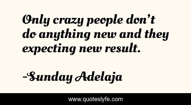 This page presents the quote "Only crazy people don’t do anything new and they expecting new result.". Author of this quote is Sunday Adelaja. This quote is about action, actions-and-results, expectation, expectations,.