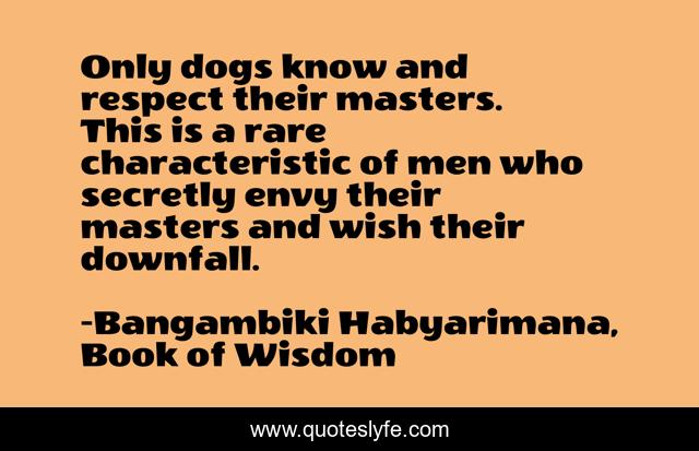 This page presents the quote "Only dogs know and respect their masters. This is a rare characteristic of men who secretly envy their masters and wish their downfall.". Author of this quote is Bangambiki Habyarimana, Book of Wisdom. This quote is about loyal, loyalty, loyalty-and-disloyalty,.