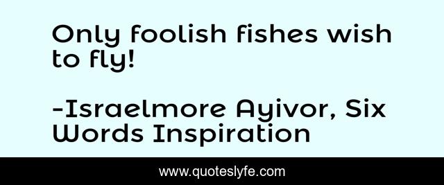 This page presents the quote "Only foolish fishes wish to fly!". Author of this quote is Israelmore Ayivor, Six Words Inspiration. This quote is about fly, fool, six-words-inspiration, unique, flight, tilapia, inspiration, fish, six,.