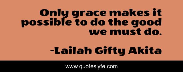 This page presents the quote "Only grace makes it possible to do the good we must do.". Author of this quote is Lailah Gifty Akita. This quote is about enthusiasm, actions, good-deeds, grace, inspirational,.