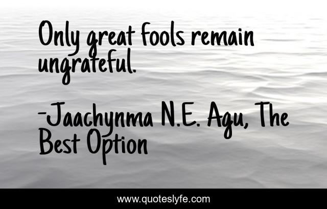 "Jaachynma N.E. Agu, The Best Option Quotes." Quoteslyfe.com, 2025. Mon. 08 Dec. 2025. <https://www.quoteslyfe.com/quote/Only-great-fools-remain-ungrateful-18761>.